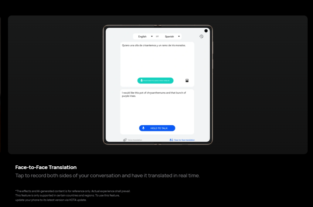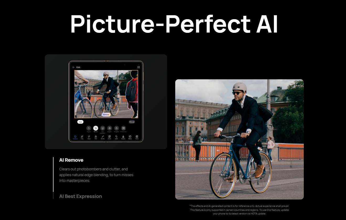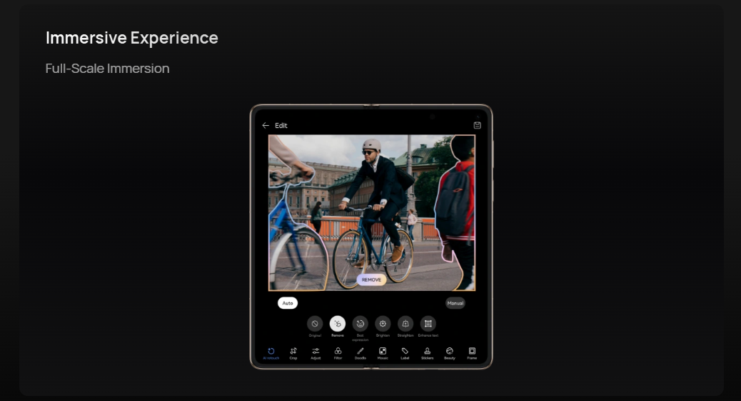 - Immersive Experience: AI Remove, AI Best Expression, Two-Way AI Noise Cancellation, Face-to-Face Translation