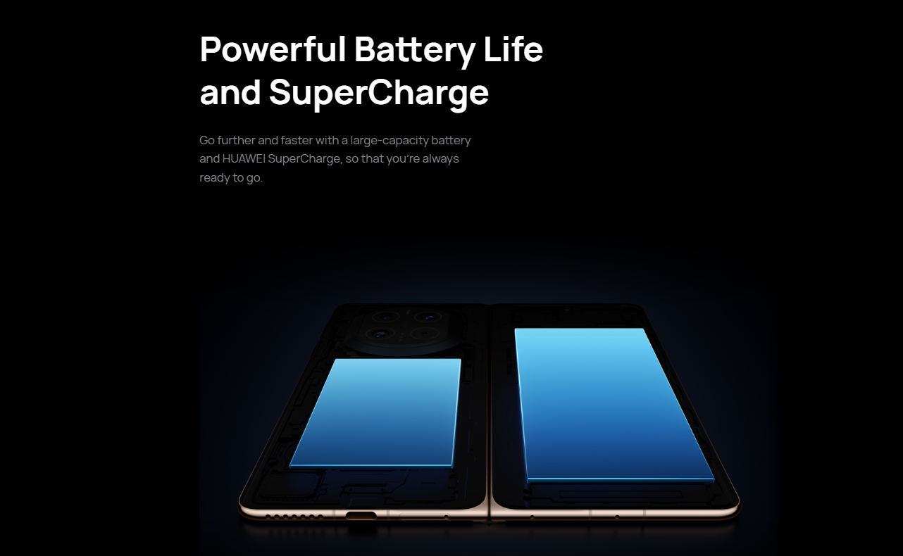 - Powerful Battery Life and SuperCharge: Dual cell battery (1850 mAh) and (3750 mAh) Battery capacities, HUAWEI SuperCharge of 66 W wired and 50 W wireless