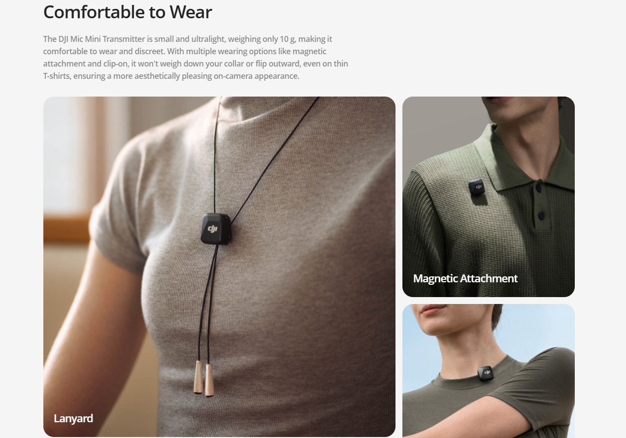- Small but impressive: The DJI Mic Mini Transmitter mini Bluetooth microphone is small and ultra-light, it weighs only 10 g and is therefore comfortable to wear, discreet and aesthetically pleasing in front of the camera.
