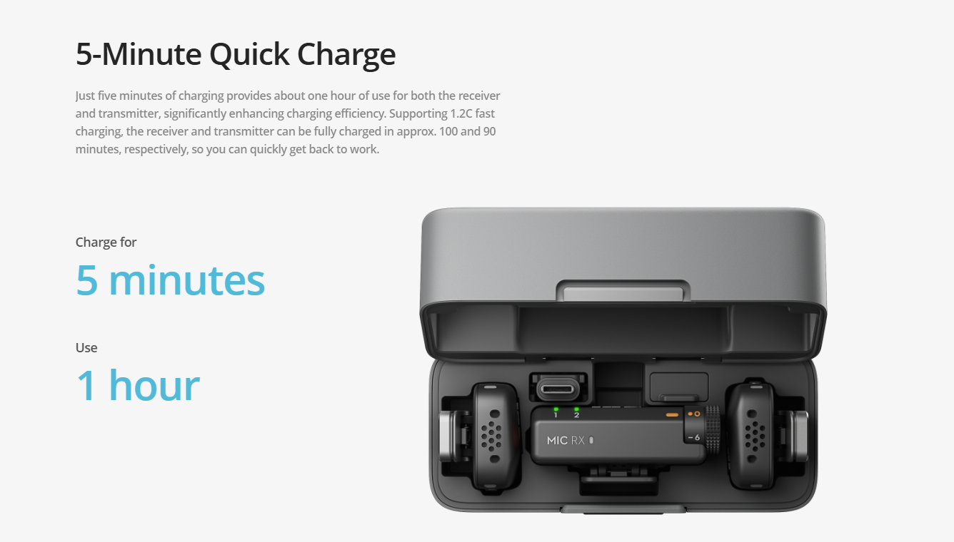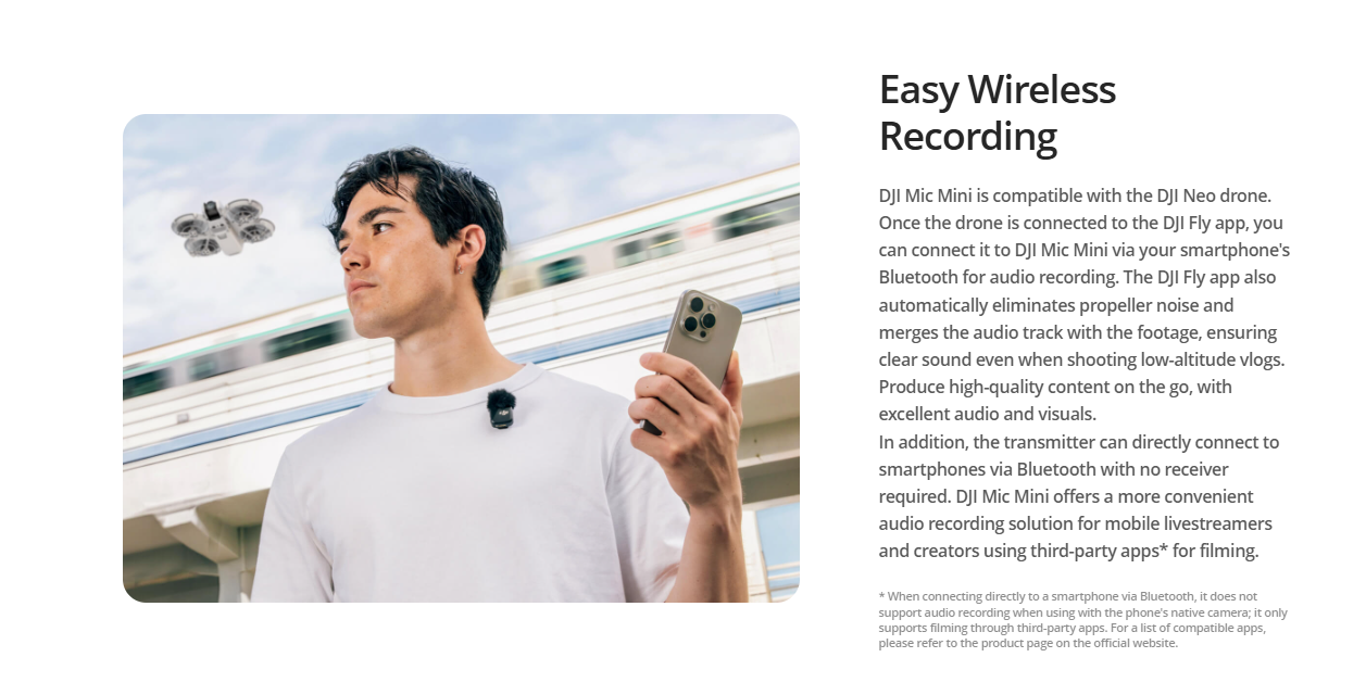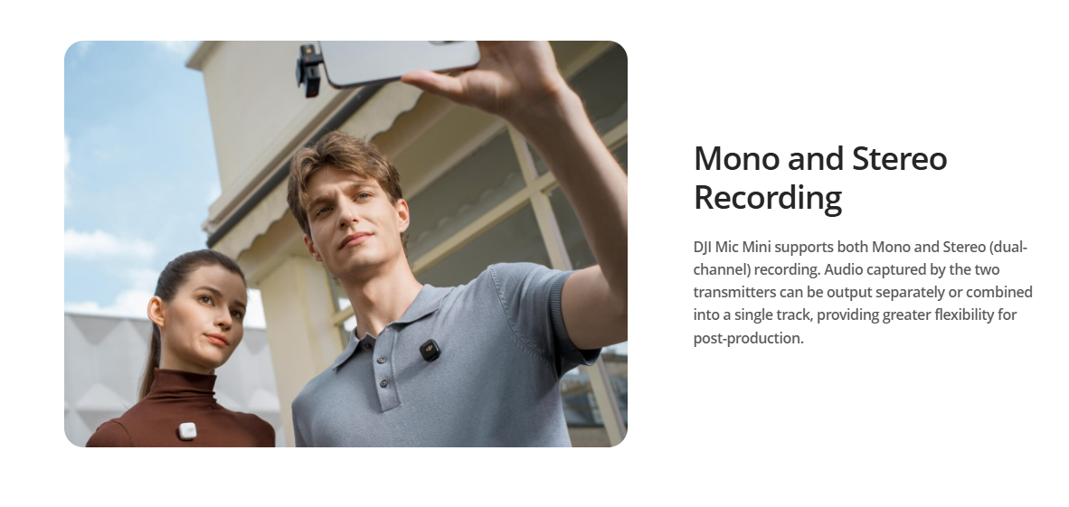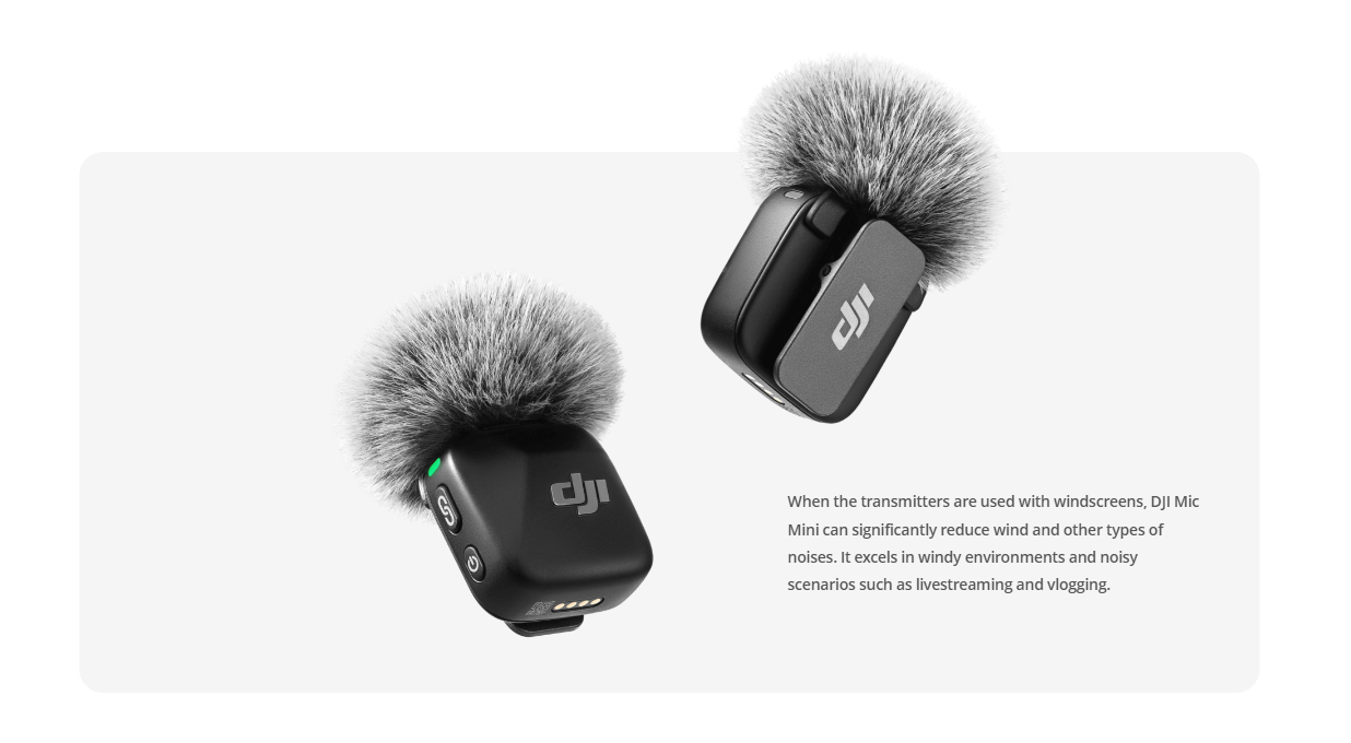 - Reliable audio quality at all times - DJI Mic Mini has automatic volume limitation when the audio input is too high to avoid overriding and ensure reliable audio quality in any environment.