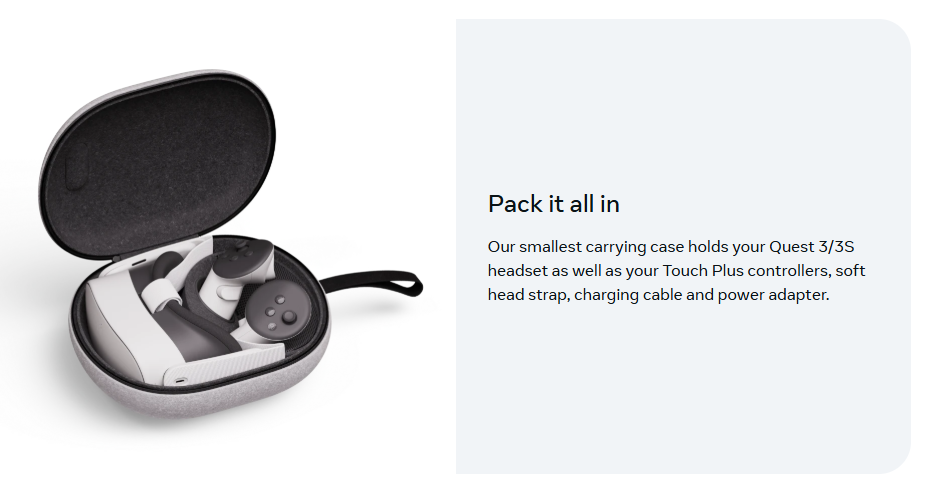 - Sleek protection - Securely store your Quest 3/3S headset and accessories anywhere you go with our most compact carrying case yet.