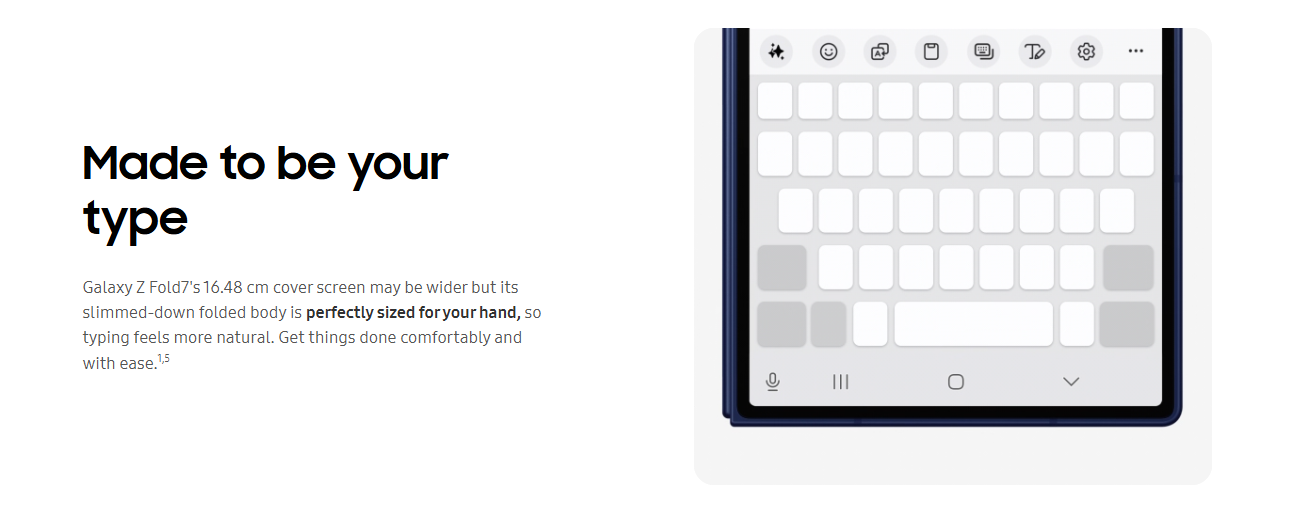 - Ultra Sleek - Folded or Unfolded, the ultra light Galaxy Z Fold7 exceeds your expectations of a smartphone. With a wider 21:9 cover screen & sleeker form, it's easier to hold and get things done comfortably.