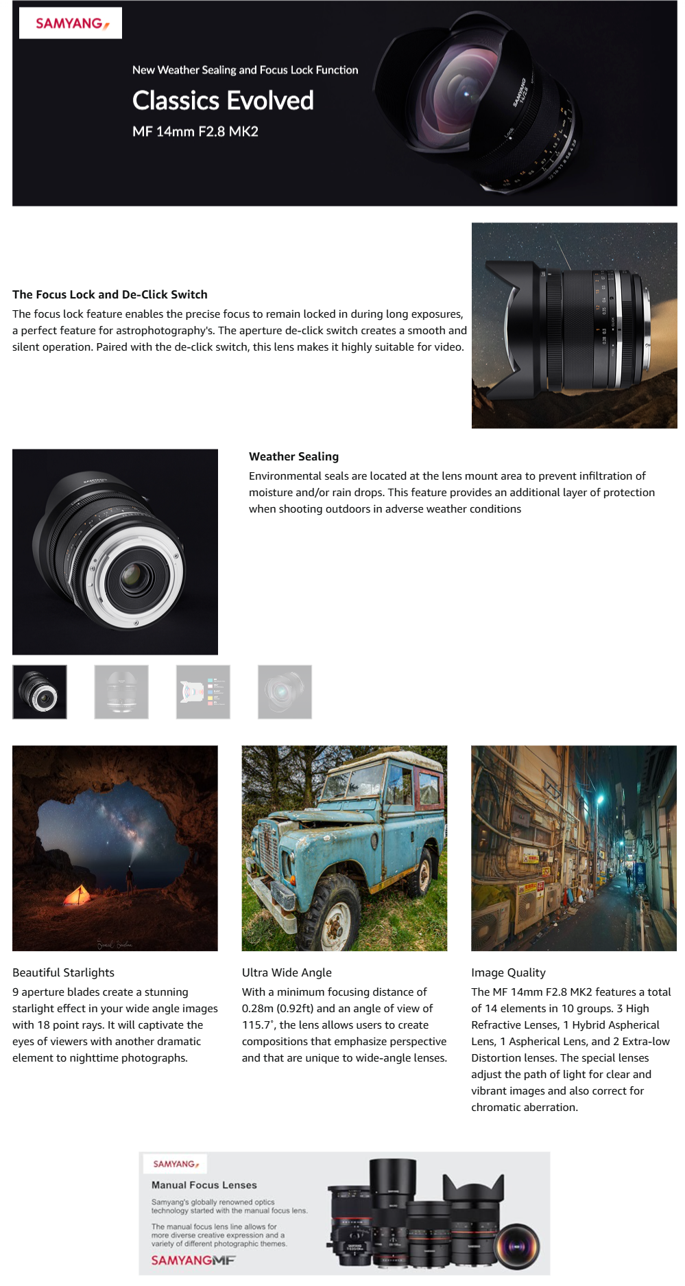 - Samyang MF 14mm F2.8 MK2 Manual Focus Lens for Sony E