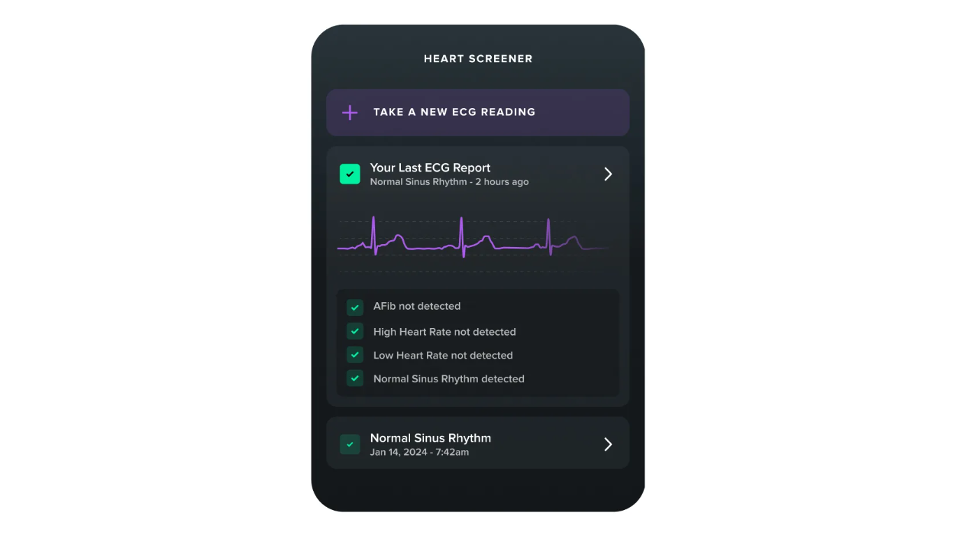 - ON-DEMAND ECG READINGS: With electrocardiogram readings, Heart Screener detects potential signs of AFib to help you stay informed about your heart health.*